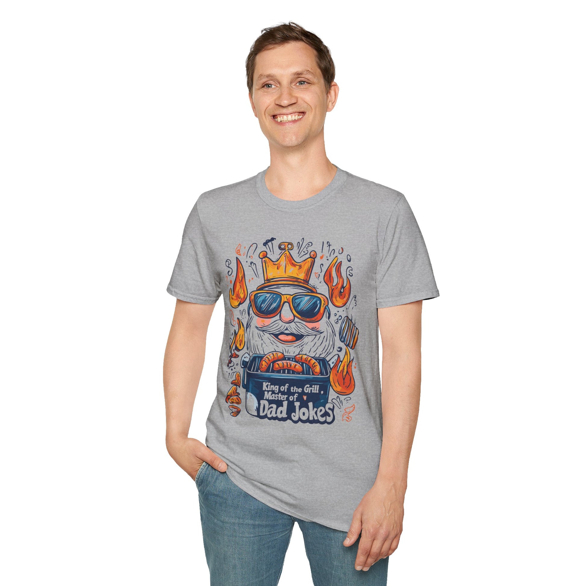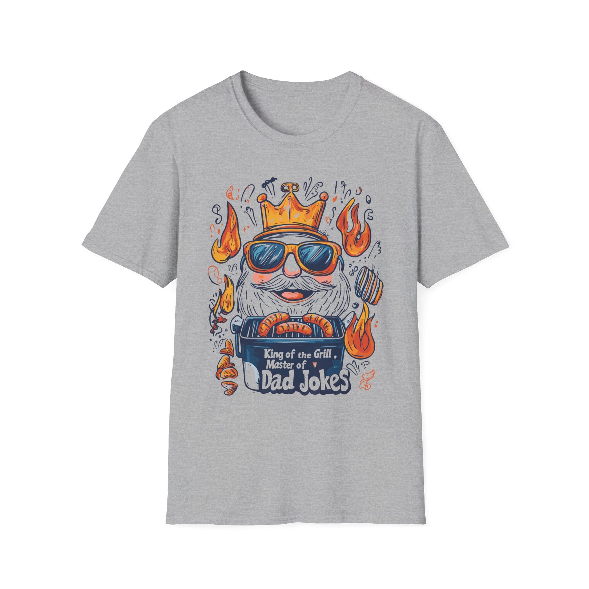 King of the Grill, Master of Dad Jokes T-Shirt | Father's Day Gift | Unisex Tee for Dads | Comfortable Casual Wear | Gift for Dad | Fire Theme