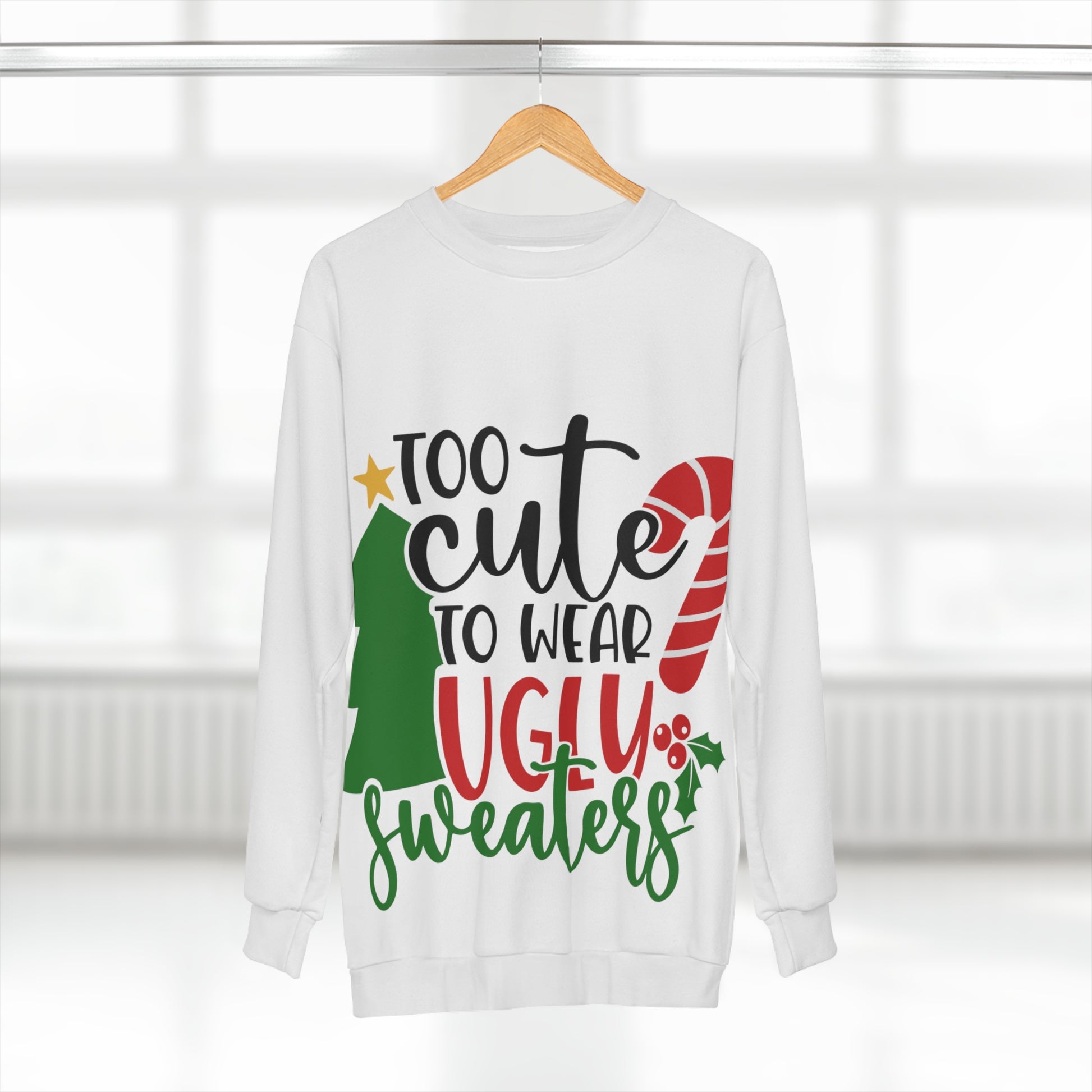 Too Cute to wear ugly sweaters Unisex Sweatshirt (AOP)